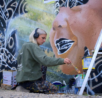 I began painting murals in 2020 but created my art business at fifteen years old. I had the amazing opportunity right out of high school to travel full time to paint murals across the U.S.A in my self-converted tiny home on wheels. This journey allowed me to grasp a deep understanding and learn new tools on how to properly network, scale your art business, and become a traveling artist .